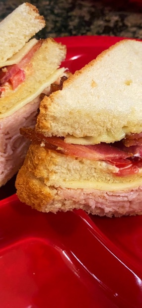 When summer rears it’s head and it’s so hot and sticky and you just can’t stop sweating, a super fat Bacon,Tomato, Honey Smoked Turkey and Cheese club sandwich just hits the spot.. Plus I will eat bacon on anything. I forgot lettuce but I’m not that sad about it. And now that I can air fry bacon super quick without heating my entire kitchen up as well it’s always a good idea!