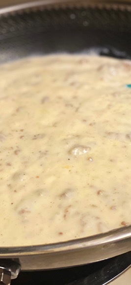 Bacon+Canadian Bacon+Eggs+Cheese stuffed buttery biscuits Served with Sausage+Bacon fat +Butter, Milk Gravy
