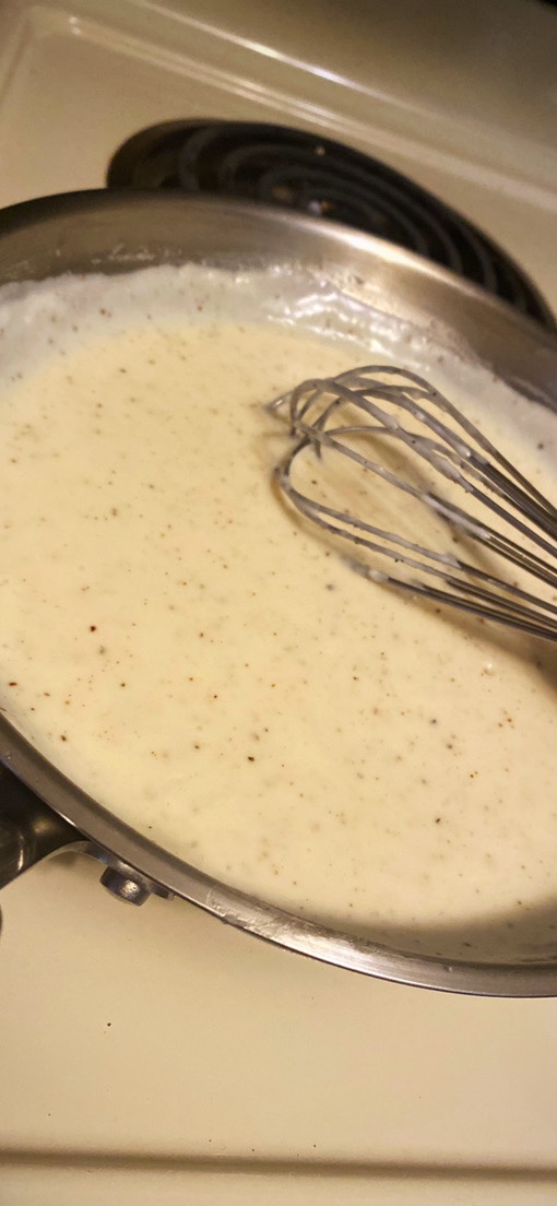 Cheesy scrambled eggs+crispy bacon+ bacon gravy+ honey biscuits